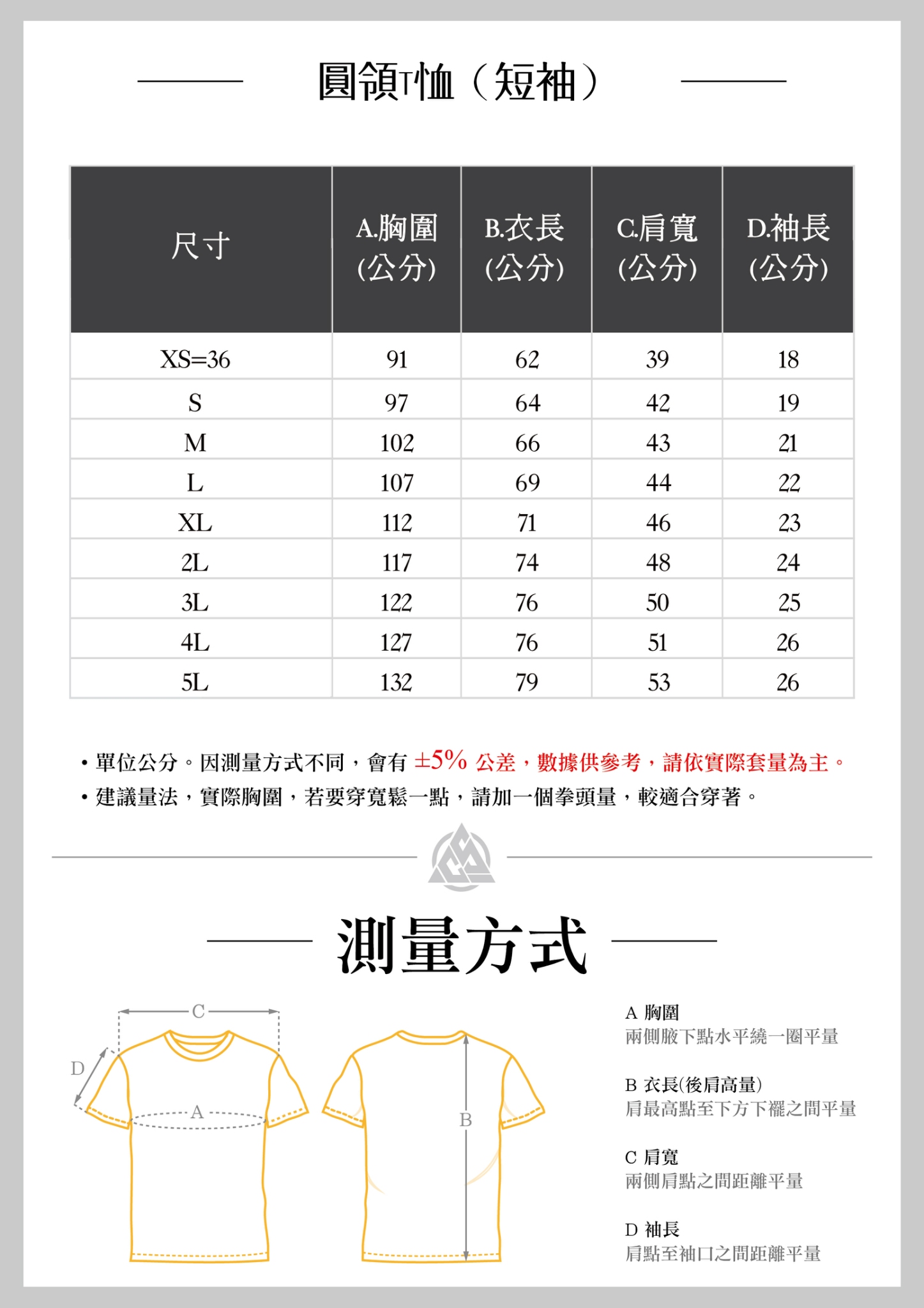 114校慶運動大會健走活動衣服尺寸表